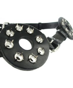 Combine beauty and pain with the Strict Leather Studded Spiked Breast Binder. This sturdy leather strap encircles the bust, with two studded leather disks placed directly over the breasts. The tiny spikes on the reverse side make for a biting reminder of who is in control. There are thoughtful cutouts to give you unfettered access to their sensitive nipples, and there are two buckles to adjust the size (and ouch factor!) in the front and back.