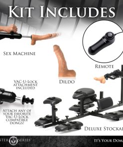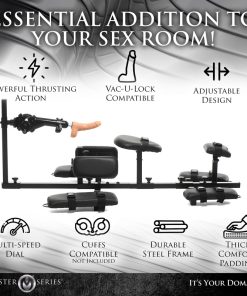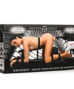 Have your partner lay over the stockade and you can take note of how long their body is compared to the stockade and make adjustments. Once everything is in place, strap them in for a comfortable, cushioned, long session in bondage! You can turn the sex machine on and use lots of lube on that powerful, pounding dildo or you can detach it and use your hands, mouth, body or anything else you desire. Get on the right level and make them give you oral while restrained! You can use a chair to sit in front while you get head and control the pounding dildo at the same time! While they’re strapped in they’ll be totally at your mercy! Prepare for intense intense scenes you both can thoroughly enjoy!