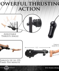 All of the cushions are plush and padded and covered in vegan friendly, PU leather that is comfortable and easy to clean. Your submissive will be bent over, similar to when they’re on a spanking horse, so you can penetrate them in doggy style with your body, hands or the sex machine! The sex machine can be used manually and detached or you can attach it to the machine so it automatically thrusts up to 195 RPM! The dildo is made out of TPE and should only be used with water-based lubricants. The sex machine plugs into the wall so it never runs out of power.