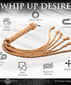 Take your impact play up a notch with this 6 tailed rope whip! Made of nylon, it is highly absorbent, durable and built to last! The knots on each end of the falls add an extra bite to each throw. Each fall is twisted so it stays tightly together and they are braided together along the handle. The firm handle keeps its shape with the help of a metal alloy core. Enjoy using this as a tool to give your lover a wicked little tap on the bottom when the flogging is paused. Easy to hold and to aim, this whip is great for beginners and advanced users alike! Due to its absorbent nature, it’s important to properly clean your rope after use, especially when it has come in contact with bodily fluids. Start by soaking the rope in a tub of water with mild detergent. Rinse using a rope washer or place directly into the washing machine. Washing rope in a top-loading washing machine is the easiest method.