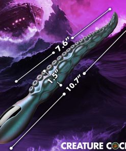 • Fantasy Vibrator: This tapered, textured, tentacle is covered with octopedal suckers and shines with a metallic, iridescent teal color. Grab hold of it via the round base and slide it inside!