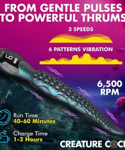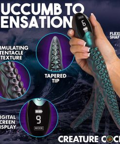 Unleash your wild side and indulge in the pleasures of the deep sea with the Tentavibe Vibrator from Creature Cocks, an enticing blend of imagination and stimulation. This textured tentacle features realistic suckers and an eye-catching iridescent teal hue. The body-safe silicone shaft bends with ease, adding to your comfort. Switch between 3 speeds and 6 pulsation patterns, all displayed clearly on a digital screen at the base, showing both the selected mode and battery status. Recharge effortlessly using the provided USB cable and enjoy splashproof versatility, ensuring reliable performance outside the shower or bathtub. Elevate your intimate moments with this captivating toy.