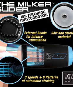 Give yourself a hand… by not having to use your own! With this Auto Milker stroker you can enjoy 3 speeds and 6 patterns of stroking! The rotating rows of beads help to stimulate you even further for more enhanced stimulation as you enjoy the stretchy, soft, TPE sleeve that comfortably wraps around and cushions your shaft. The plastic case is easy to hold and lets you angle it so you can enjoy it while sitting, laying down or standing! With an RPM of up to 220, you can really dial up or down the intensity with this full service stroking toy! The Auto Milker is also rated as IPX6 waterproof so you can take it into the shower for hot, wet sessions! Recharge using the USB cable provided between uses. Clean up is also easy! The inner sleeve is removable so you can wash the case and sleeve separately. Use warm water and mild soap on the sleeve and then spray with a toy cleaner before letting air dry. Only reinsert the sleeve once it’s completely dry. Use a toy cleaner and soft cloth on the case when needed.