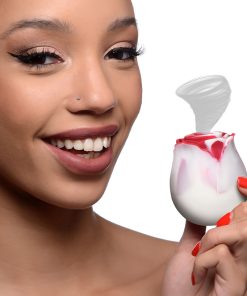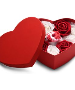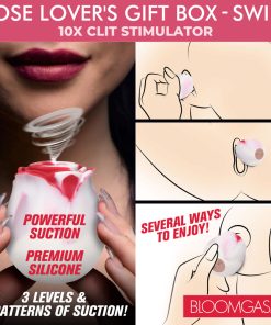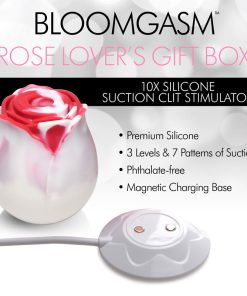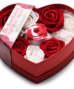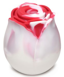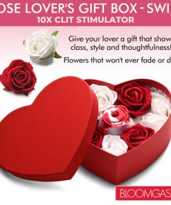 Give your lover a gift that shows class, style and thoughtfulness! This sucking rose clit stimulator is surrounded by roses and placed in the center of a heart-shaped box! Carefully curated to let your partner know that you love them so much… you want them to have lots of orgasms! The powerful rose nestled in this bouquet offers 3 intensity levels and 7 patterns. With air-stim technology that gently sucks at the clit, this kind of stimulation will send them over the edge of ecstasy! Made out of silky smooth silicone, it is also phthalate-free and body-safe. Use only with water-based lubricants! Want to get even wetter? Take this waterproof toy into the shower or bring it into the bathtub! It can be submerged under water for up to 30 minutes without issue. To clean, use warm water and mild soap, then spray with a toy cleaner and wipe dry. Recharge using the magnetic charging base and let your rose perch in place like a posed decoration!