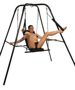 Set up the swing and stand. If you’re the one who will be standing while using it, make sure it’s set up so that the chair is at hip height for optimal access to penetration. For manual penetration go into a lunge widen your stance for the best power position. Then help your partner get up into the chair. They can place their legs up in the stirrups and you can have them seated or laid back at the angle of your choice. Once you have them in the chair, now you can enjoy easy penetration! Grab hold of the chair and rock it back and forth against you with each thrust. Hold them in place and get at their sweet spot easily. Go down on them or play with their nipples, erogenous zones and more! If you lay them back, they can give you oral as well! Have fun and enjoy the ride!
