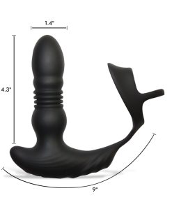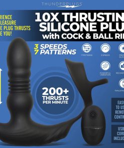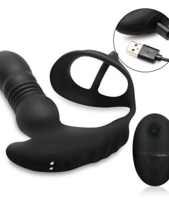 Made for male pleasure! This Thrusting Silicone Vibrator includes a stretchy silicone cock and ball strap to pleasure your backdoor while enhancing your erection. The thrusting shaft pounds your backdoor with 3 speeds and 7 patterns of mixed vibrations and thrusts, perfect for anal lovers. The ergonomic shape provides a welcoming fill, crafted to stimulate all the right spots while you pleasure yourself or your lover – use this Thunderplug during intercourse for an extra spicy session!