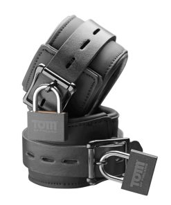 These Neoprene wrist cuffs are adjustable, comfortable, and come with a Tom of Finland brand lock and two keys. The double layered material is stamped with a metal Tom of Finland logo. Fully adjustable and ideal for long term wear. Matching collar and ankle cuffs available, sold separately