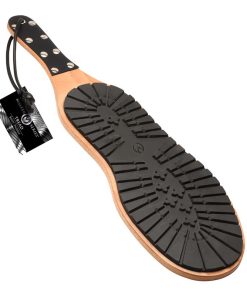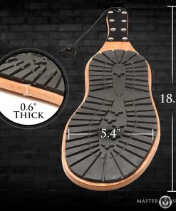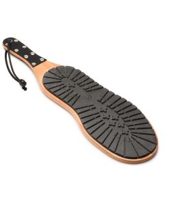 Introducing the Tread Boot Paddle – an exceptional addition to your kink play. With its dual-sided functionality, choose between leaving a striking boot mark or using the smooth wood side for varied sensations. The paddle’s handle is encased in supple vegan leather, offering a comfortable grip during intense sessions, reinforced by nickel-free tacks for a secure hold. Additionally, a practical loop allows for easy hanging and storage, keeping your play space organized. Elevate your BDSM experience and leave your mark on your submissive partner’s behind!