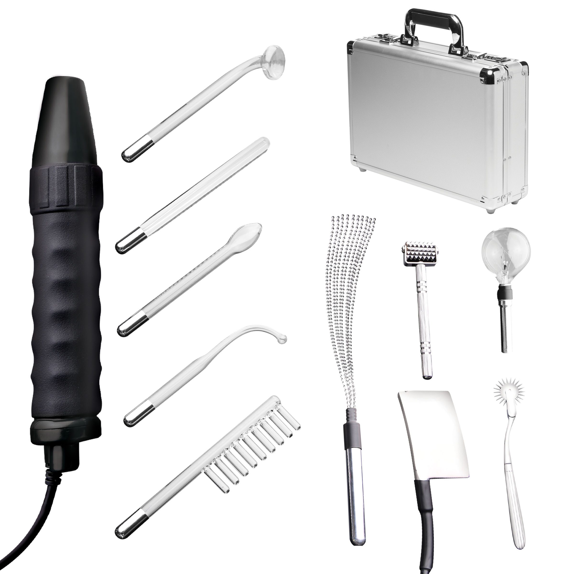 • Metal Components: Enjoy using conductive sensation tools such as the Wartenberg wheel, the Rollenstein, the ball chain flogger, and the body contact plate that allows your fingertips and body to conduct the electricity with each touch!