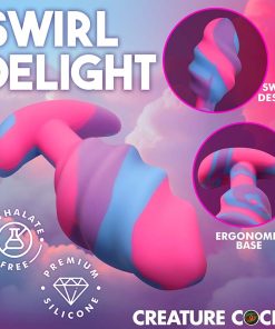 • Introducing the delightful Unicorn Swirl Butt Plug, designed to transform your intimate moments into magical memories! The rounded head ensures a smooth entry, while the unique swirling ridge offers stimulating massages to your most sensitive spots. Crafted from top-quality, body-safe, silky silicone, this butt plug is both luxurious and safe. It’s designed with a slim, wide base to prevent slipping in too far, making it safe and comfortable for longer wear. With an enchanting and eye-catching mix of purple, pink, and blue, this unicorn-inspired plug is a whimsical addition to your collection. Enjoy a magical journey with every use.