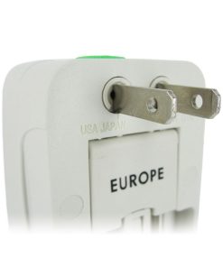 This Universal Plug Adapter and Surge Protector allows you to use your favorite plug-in toys wherever you may travel. It provides 4 different plug configurations that fit receptacles in a variety of locations around the world. Flip up the central set of prongs for European 220V outlets. Unlock the top pair of prongs for 100V – 120V outlets like those in the United States or Japan. Twist these prongs toward the center to fit Australian 240V and similar receptacles. Unlock the bottom set of prongs to accommodate 240V outlets like those used in the United Kingdom.