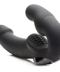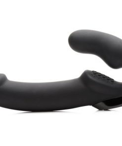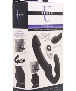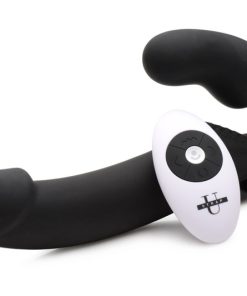 The first strapless strap-on with a remote control in the world, this couples toy provides more convenient vibrating pleasure during pegging or penetration that does not involve a penis. The shape allows one partner to insert the smaller end vaginally, holding it with their kegel muscles or adding a harness for extra support. A pad with ridges provides clitoral bliss as they grind against it. Meanwhile, every thrust will send the long, smooth shaft into their partner. The curves on both ends target the G-spot or P-spot for direct stimulation. Independent dual motors are easily controlled via the panel on the front of the Urge, or with the handy remote control! Explore 3 speeds of buzzing and 5 patterns of pulsation for each partner. It is even waterproof for wet, hot fun in the bath, shower, or pool. Made of premium silicone, the Urge is non-porous, phthalate-free, and thoroughly sanitized with mild soap and warm water. Preserve the material by avoiding use with silicone lubricant.