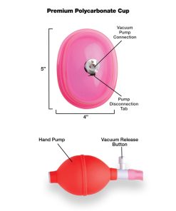 Experience new levels of titillation! With this Size Matters Vaginal Pump kit, both you and your partner will enjoy the erotic sensations and inviting appearance of your newly pumped-up pussy. Fit the large, ergonomic cylinder over your vagina and you or your lover can squeeze the medicine-ball style hand pump to create suction against your most intimate areas. Sensitivity is heightened as your labia enlarges for the ultimate in lovemaking pleasure! The quick-release valve and no-kink hose make this easy to use for beginners and experts alike. Furthermore, the airlock release system holds pressure even when you remove the pump and tube from the cylinder.
