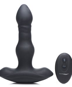 Treat your ass to a plug that vibes and thrusts! Ergonomically designed for a satisfying fill and precise pumps – the bulbous tip and textured shaft rub and stimulate your depths, while the narrow shaft and base keeps things easy on your backdoor entrance.