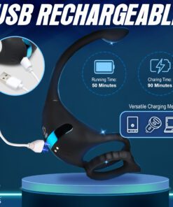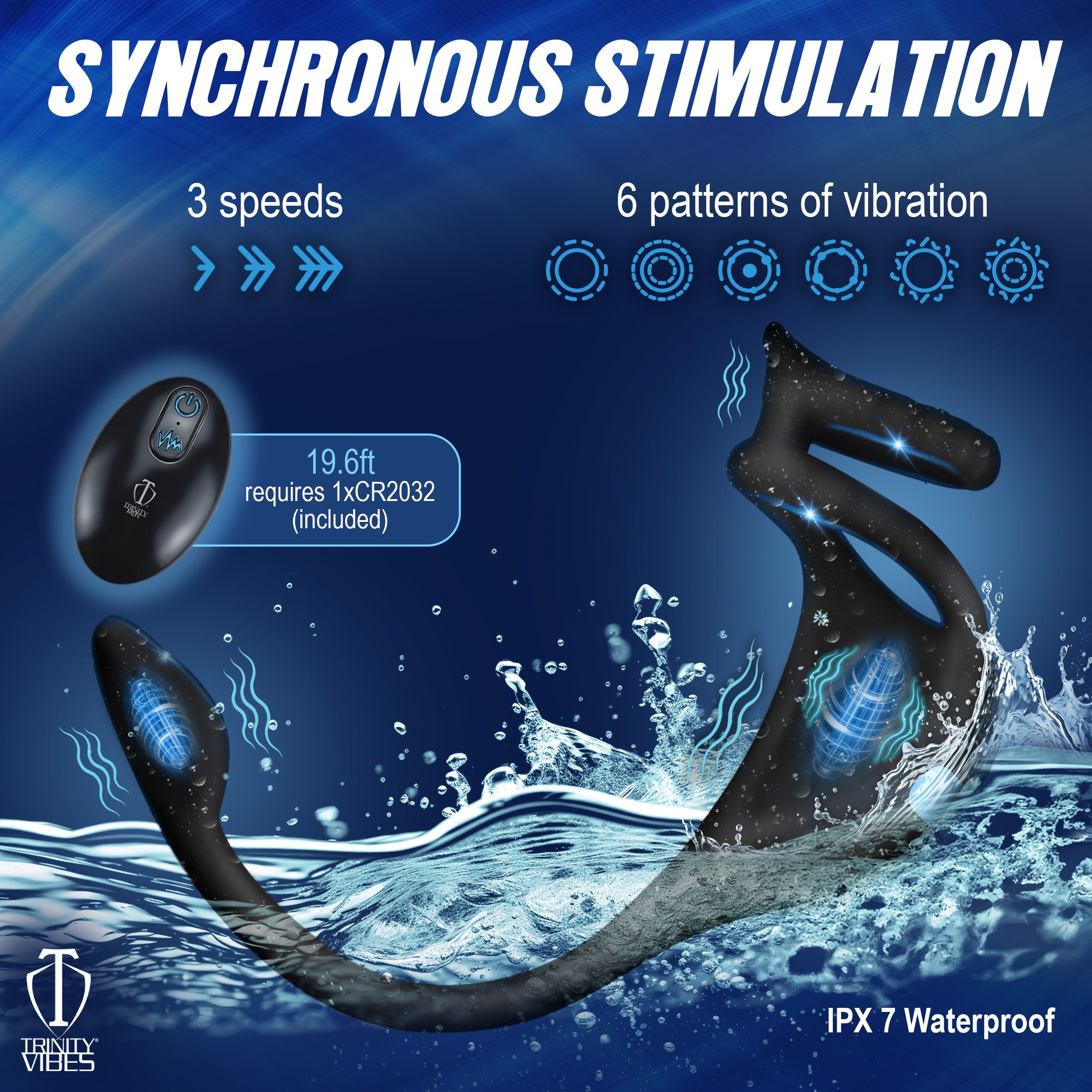 Your prostate is begging to be milked. This vibrating C-ring and anal stimulator is the perfect toy to stimulate your prostate and satisfy your curiosity! There are two stretchy rings, one for your balls and the other for your shaft, that hold the toy in place. A buzzing vibrator sits against your balls and perineum while the rings tighten and keep you hard. At the end of the stretchy, ropelike cord is a small, easy to insert plug! That plug is perfectly shaped to slip inside easily and rest against your P-spot! Turn on both vibrating motors and enjoy 3 speeds and 6 patterns of vibration that stimulate both the inside and outside of your prostate! You can enjoy it with or without the plug inserted, as well! Use the battery-operated remote to change settings once it’s inside and in place, then enjoy solo or partnered sessions. Made out of premium, phthalate-free, silky smooth silicone this toy is body-safe and best used with water-based lubricants. Rated IPX7, it can be taken in the shower or even submerged underwater for up to 30 minutes! Recharge after use via the USB cable provided. To wash, use warm water and mild soap, then rinse it off, spray it with a toy cleaner, and pat it dry.