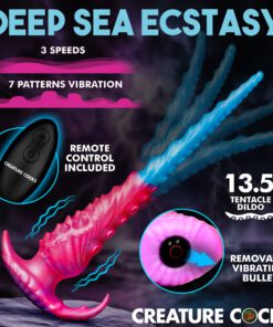 Take pleasure to the next level with this long, vibrant tentacle-style anal snake. Covered in intricate textures such as soft ridges, spikes, and suction cup details, this unique design delivers dynamic stimulation. Spanning over 13 inches in length with a tapered form, it offers gentle entry and progressive depth for users of any skill level. Equipped with 3 speeds and 7 vibration patterns, the removable vibrating bullet provides powerful buzzing tailored to your liking. Cleaning is a breeze, and the cordless remote makes changing vibration intensities simple and convenient. Constructed from high-quality, body-safe silicone, it is both firm and flexible for ultimate comfort. A wide, secure base ensures your safety during every session.