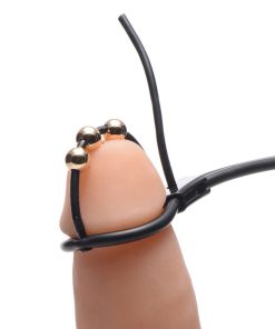 This flexible, versatile toy adds exciting electro stimulation to thrilling urethral insertion. The adjustable and removable balls at the top delivery the current inside as well as out. Just loop the noose style rubber loop around the head of your cock and tighten to fit you. Adjust the balls for precise stimulation, then plug the leads of your favorite power box into the ends and feel an extreme jolt of pleasure! Works with most Zeus power boxes, sold separately.